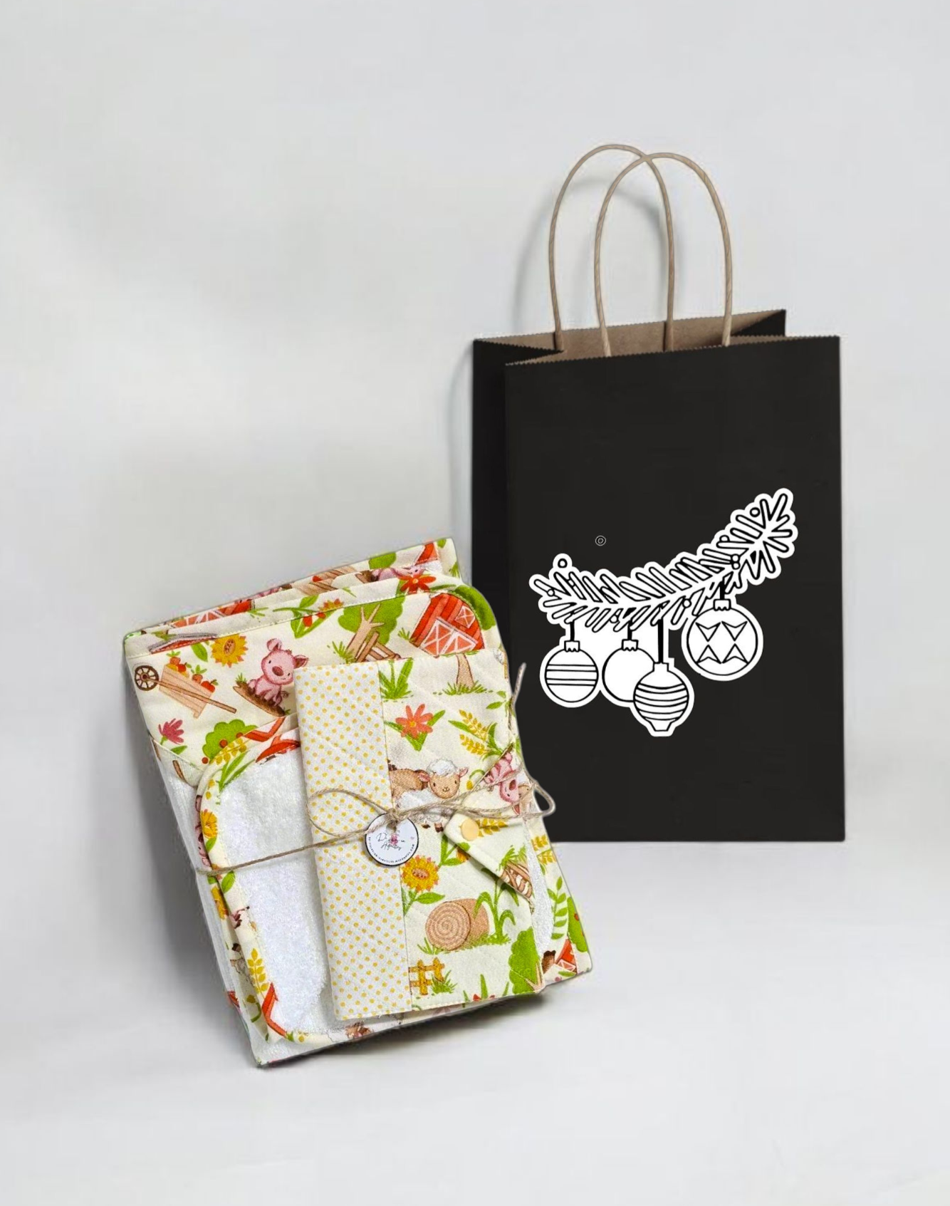 Ens. serviette de bain, lingettes (2) et protège carnet de santé pour bébé