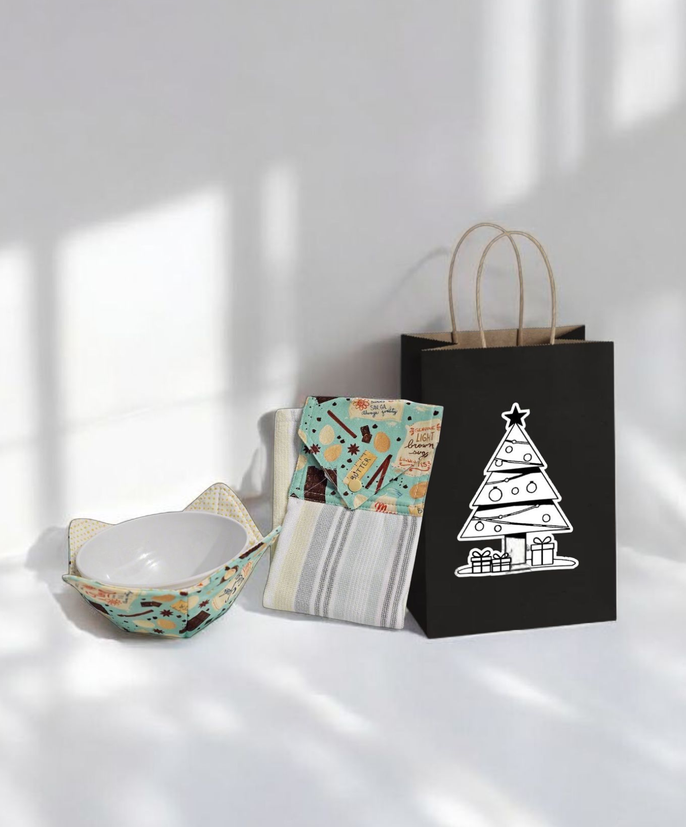 Ensemble sous-bol réversible et essuie-mains assortis.